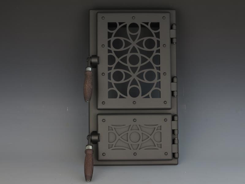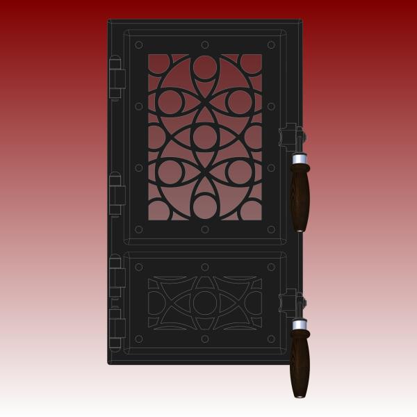 Dvířka jsou vyrobená z oceli o síle 4 mm povrchová úprava žáruvzdornou barvou a výpal v peci.