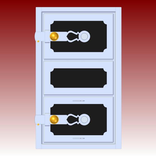 Dvířka a rámeček jsou z nerezu.Takto provedená dvířka mají spostu výhod,na povrchu nepálí,mají dvě vzduchové mezery a isolaci,jsou těsněná šnůrou a mají tzv.dětskou pojistku proti otevření.Popelníková dvířka mají regulaci vzduchu pr.40mm.