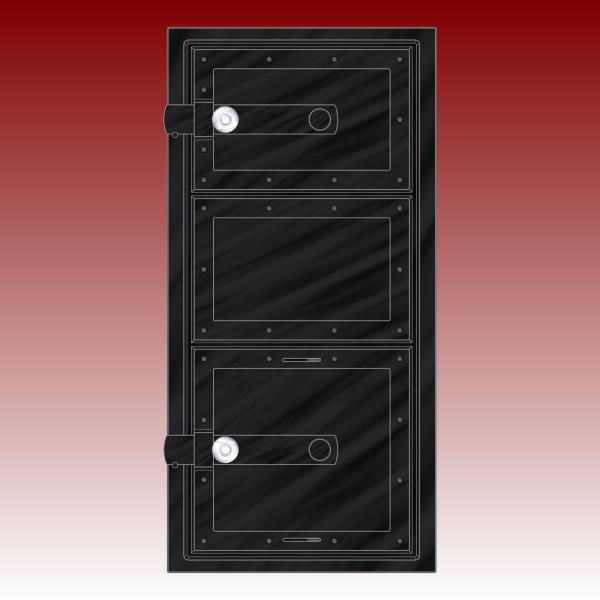 Dvířka a rámeček jsou z nerezu.Takto provedená dvířka mají spostu výhod,na povrchu nepálí,mají dvě vzduchové mezery a isolaci,jsou těsněná šnůrou a mají tzv.dětskou pojistku proti otevření.Povrchová úprava--tryskání ,nástřik žáruvzdornou barvou a výpal v peci.