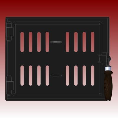 Dvířka ocelová těsněná šňůrou jsou vhodná do udíren.Barva žáruvzdorná černá.